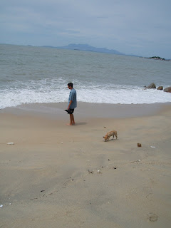 Sleep. Eat. Pee on the carpet a bit. Hide. Chew a bone. Sleep. Get rocked in the hammock chair. Go to the beach and woof at the waves. Pee outside and get treats. Sleep some more. Trip the lady who gives me food. Get loved on by dozens of school kids. Eat again. Sleep again. The same to be repeated tomorrow.